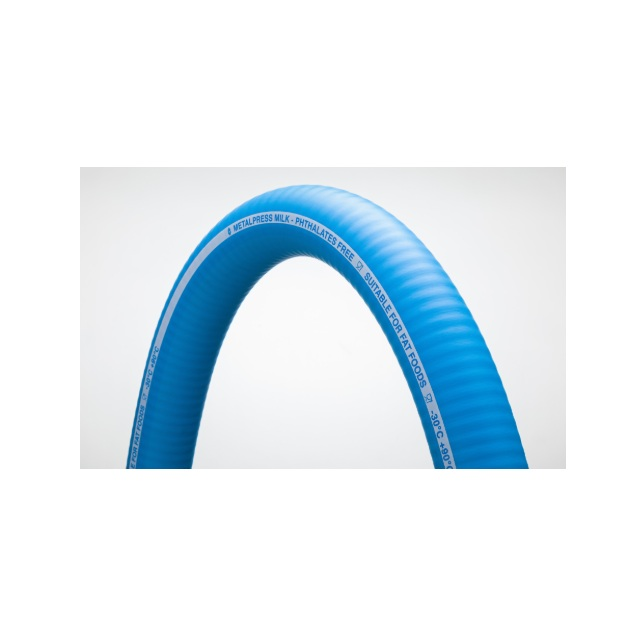 Termoplastická pryžová (TPV) hadice s dvojitou textilní výztuhou a kovovou spirálou, pro sání a přečerpávání mastných potravinářských tekutin, vhodná zejména pro mléčné výrobky.Výztuž z polyesterového vlákna pro větší odolnost vůči pracovním tlakům.Pro přečerpávání pitné vody, kapalin na bázi mléčných výrobků a kapalin splňujících požadavky prohlášení o shodě (FDA 21 CFR, oddíl 177.2600, norma ANSI/NSF 51: „Potravinářské vybavení“ a norma NSF/ANSI 61: „Součásti systémů pitné vody“).