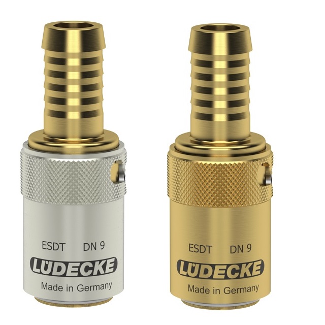 Temperovací rychlospojky DN 9 s velikostí průměru čepu 13,5 mm z mosazi 2.0401. Jsou to spojky zejména pro plastikářkský průmysl. Doprava olejů, kapalin a horkého vzduchu nebo sání stupně vakuua. Systém ESD je plně kompatibilní s americkým systémem DME 3/8", nikoliv Hasco.Rychlospojky určené pro plastikářské stroje a formy s volným průchodem.Pro aplikace udržení stále teploty horkou a studenou vodou, popřípadě temperovacím olejem.