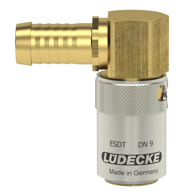 ALM - Automatický zajišťovací mechanizmus (Automatic Locking Mechanism) - patent Lüdecke.Temperovací rychlospojky Série ESDT DN 9 s velikostí průměru čepu 13,5 mm z mosazi 2.0401.Pro aplikace regulace teploty s horkou nebo studenou vodou a temperovaným olejem.Nejbezpečnější a nejžádanější rychlospojky v plastikářském průmyslu (práce s horkými médii).Oproti zajištění typu S, (např. série ESD nebo ESDF) dostávají přednost zejména kvůli bezpečnostni např. v hustém provozu s horkými oleji (horkou vodou).Verze s přídavným těsněním O-kroužkem na připojovacím portu, aby se zabránilo úniku při vysokoteplotních aplikacích.Pro spojení se zástrčkou řady ESD DN 9.Systém ESD je plně kompatibilní s americkým systémem DME 3/8", nikoliv Hasco.