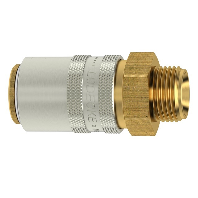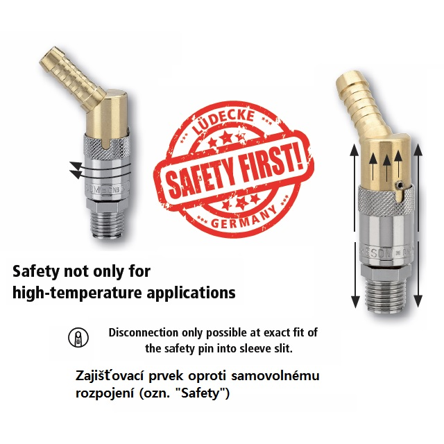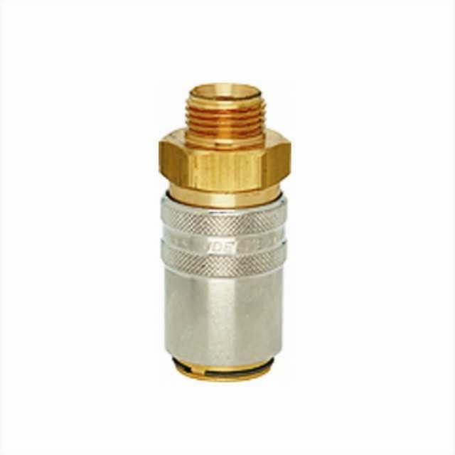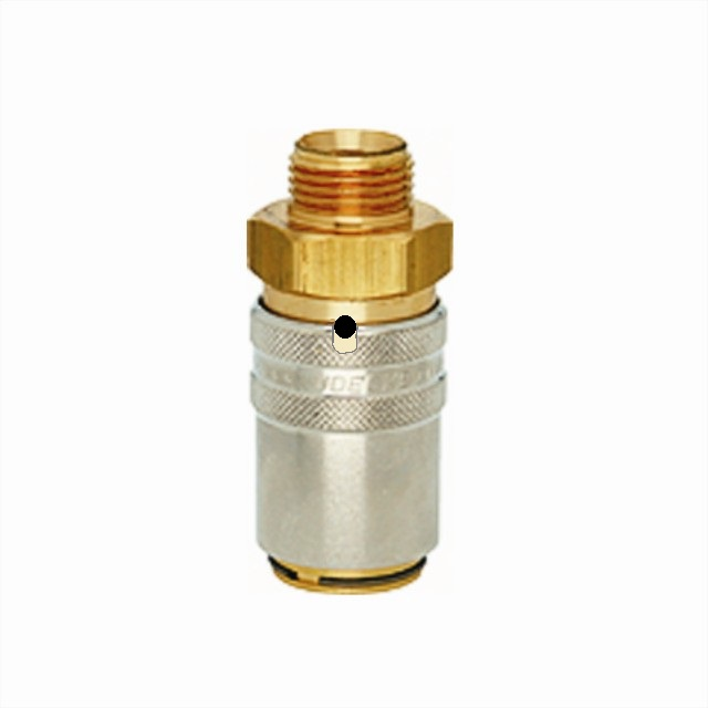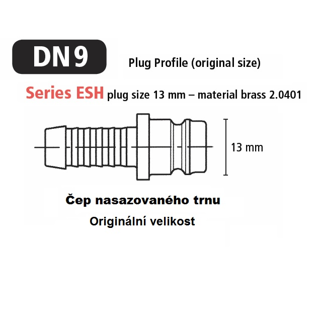 Rychlospojky určené pro plastikářské stroje a formy s volným průchodem.Pro aplikace udržení stále teploty horkou a studenou vodou, popřípadě temperovacím olejem.Kompatibilní s Hasco Z8. Mosazné tělo a objímka, vnitřní část z nerezové oceli, těsnění viton.Rychlospojka Plastik Dn 9 s přímým vnějším závitem bez ventilu, vnitřní kužel DIN 3863.Dn9 -řada ESH Lüdecke uvádí okraj rozměr čepu 13mm, přes výtupky čepu naměříte 13,4 mm.Položky s písmenem S na konci kódu mají v tabulce označení "zajištění".