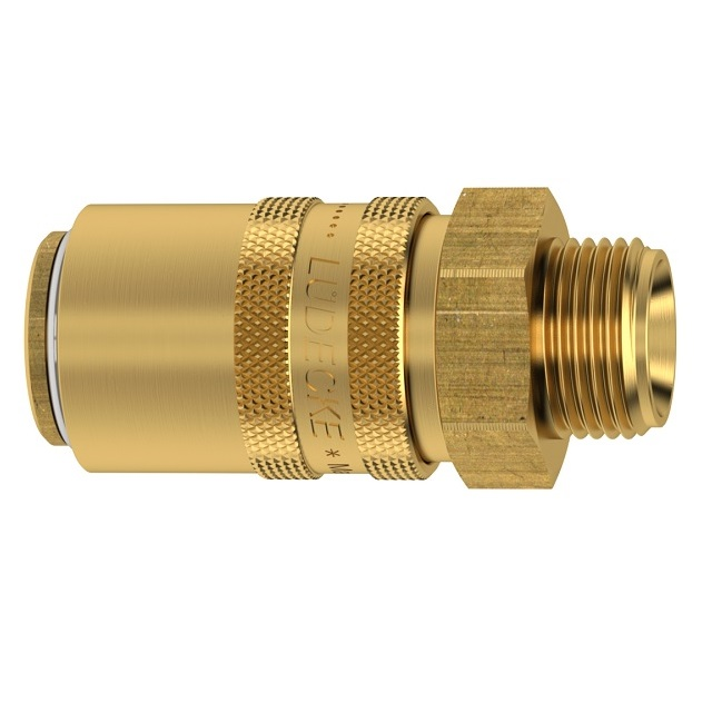 Rychlospojky určené pro plastikářské stroje a formy s volným průchodem.Pro aplikace udržení stále teploty horkou a studenou vodou, popřípadě temperovacím olejem.Kompatibilní s Hasco Z8. Mosazné tělo a objímka, vnitřní část z nerezové oceli, těsnění viton.Rychlospojka Plastik Dn 9 s přímým vnějším závitem bez ventilu, vnitřní kužel DIN 3863.Dn9 -řada ESH Lüdecke uvádí okraj rozměr čepu 13mm, přes výtupky čepu naměříte 13,4 mm.Položky s písmenem S na konci kódu mají v tabulce označení "zajištění".