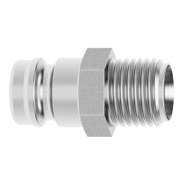 Rychlospojky určené pro plastikářské stroje a formy s volným průchodem.Pro aplikace udržení stále teploty horkou a studenou vodou, popřípadě temperovacím olejem.Rychlospojky nerezové série jsou určeny pro trny a vsuvky stejné série ESHE s velikostí čepu trnu 13 mm, kompatibilní se systémem Hasco Z 8.Nerezová vsuvka Dn 6 s přímým vnějším závitem, bez ventilu.