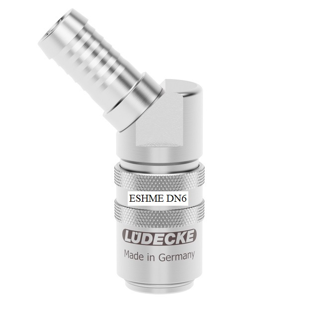 Rychlospojky určené pro plastikářské stroje a formy s volným průchodem.Pro aplikace udržení stále teploty horkou a studenou vodou, popřípadě temperovacím olejem.Rychlospojky nerezové série jsou určeny pro trny a vsuvky stejné série ESHME s velikostí čepu trnu 9 mm, kompatibilní se systémem Hasco Z 8. Nerezová rychlospojka Dn 6 s úhlovým trnem 45° s/bez ventilu pro standardní hadice.