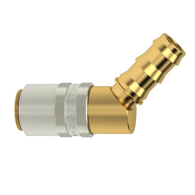 Rychlospojky určené pro plastikářské stroje a formy s volným průchodem.Pro aplikace udržení stále teploty horkou a studenou vodou, popřípadě temperovacím olejem.Kompatibilní s Hasco Z8. Mosazné tělo, a objímka, vnitřní část z nerezové oceli, těsnění viton.Rychlospojka Plastik Dn 9 s úhlovým trnem 45° bez ventilu pro nástrčné hadice.Délka trnu 33 mm, rozměr vsuvky 13 mm.