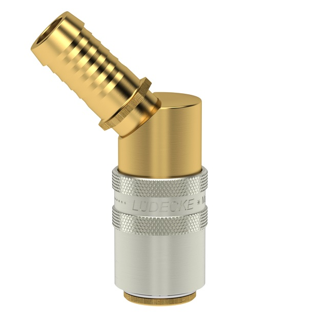Rychlospojky určené pro plastikářské stroje a formy s volným průchodem.Pro aplikace udržení stále teploty horkou a studenou vodou, popřípadě temperovacím olejem.Kompatibilní s Hasco Z8. Mosazné tělo, a objímka, vnitřní část z nerezové oceli, těsnění viton.Rychlospojka Plastik Dn 9 s úhlovým trnem 45° bez ventilu pro standardní hadice.Délka trnu 30 mm, rozměr vsuvky 13 mm.
