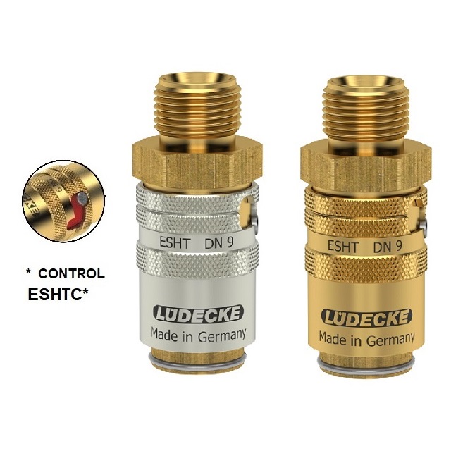Rychlospojky určené pro plastikářské stroje a formy s patentovaným automatickým bezpečnostním zajišťovacím mechanismem. Pro aplikace, kde je zapotřebí udržení stálé teploty horkou a studenou vodou, popřípadě temperovacím olejem.Kompatibilní s Hasco Z8. Připojovací části, ventilové tělo, ventil, vsuvky z mosaz MS 58/materiál 2.0401.Pružiny a rozpěrný kroužek z nerezové oceli 1.4310, koule - nerezová ocel 1.4034, těsnění: Viton.Rozměr čepu vsuvky 13 mm.Jednoruční systém spojení umožňuje velice snadná a rychlá spojení rychlospojky s protikusem (s hadicí a koncovkou).Temp Secure (bezpečnostní patentovaný systém výrobce Lüdecke) - význam je v zabránění náhodnému rozpojení, cílem je zabezpečení.Sérii DN 9 jsou díky tvarům a způsobu rozpojování 2 typy zajištění 1. Tvar Z a 2. volitelným požadavkem zajištění "S". Kombinovaná tlakově torzní pružina a zesílené uvolňovací pouzdro z vysoce odolné speciální mosazi.Volitelně s přímými, jednoduchými nebo dvojitými uzavíracími ventily, pro spojení se zástrčkou řady ESH DN 9.Pro rok 2022 výrobce Lüdecke doplnil řadu o barevně svítící destičky, viz video u sekce. Kody jsou v případě tohoto provedení ESHT* změněné na ESHTC*.