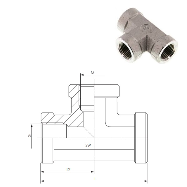 VariantyT14IG3X/POZ.PN350-183; Provozní tlak (bar) 350, Vnitřní závit 3x G1/4", DN (mm) 8, Hmotnost (kg) 0,105
