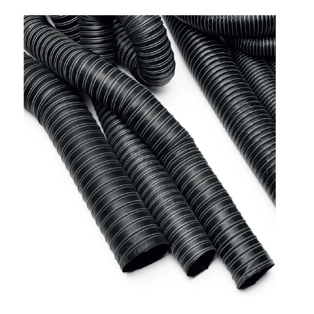 Odsávání vzduchu a par při vyšších teplotách - sklářský, hutní, plastikářský, papírenský a keramický průmysl atd. Hadice je velmi lehká, flexibilní, vynikající odolnost proti stárnutí.Dvouvrstvá skelná tkanina impregnovaná Neoprénem (CR) v černé barvy s ocelovým drátem. Tyto hadice se zvlášť doporučuje na vedení plynu na střední teploty, odsávání výfukových plynů motoru, dým, elektronické jednotky chlazení a svařování.Hadice se nezkracuje, dodává se pouze jako balení 4 m, Cena bez DPH / Mj je cena za 1 metr.