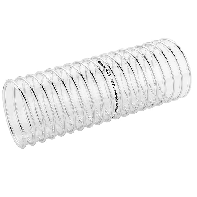 Odsávání a doprava prachu, pilin, třísek, brusného materiálu a jiných abrazivních materiálů s přítomnosti vlhkosti.Zvláště vhodná pro dopravu PVC granulátů a granulovaných krmiv v zemědělství.Hadice s vysokou mechanickou ochranou, odolná proti oděru a vůči ozónu.Směr proudění je vyznačen šipkou, směr spirály - hadice je levotočivá.Stěny této hadice jsou v souladu s nařízením Evropského parlamentu a rady (ES) č. 1935/2004 o zdravotní nezávadnosti (směrnice 2007/19CE pro materiály a předměty z umělých hmot), samozhášivé provedení podle DIN 4102-b1.Odvod statické elektřiny je možné řešit uzemněním spirály.Chemická odolnost se řeší tabulkou odolnosti materiálu PU vůči působícím látkám. Dodáme na vyžádání.Průběžné promývání při +23°C vodným roztokem 10% kyseliny citrónové a vodným roztokem 3% hydroxidu sodného.Pozor: obecně PU hadice jsou citlivé na působení silných kyselin a zásad. Popsané promývaní může zkrátit životnost výrobku, zejména pokud je mnohokrát opakováno.