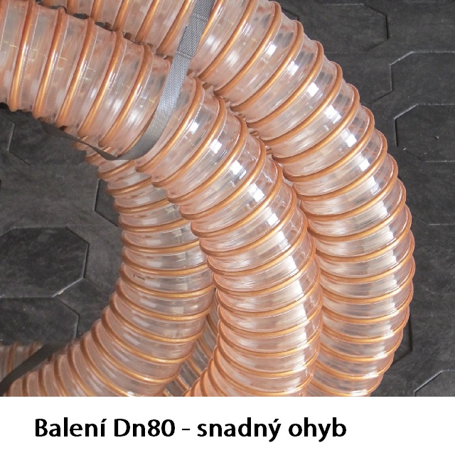 Nejrobustnější polyuretanová hadice, pásek 3,5 mm.Unikátní svými technickými a výrobními parametry - poloměr ohybu, hmotnost.V průměru 80 mm se používá na strojích pro vysprávkovávání silnic směsí asfaltu a štěrku. Doprava a sání i skleněných střepů.