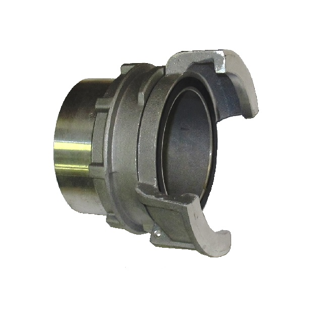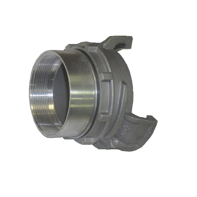 GUILLEMIN - symetrické bajonetové spojky jsou určeny pro transport a přepravu kapalných i sypkých látek a granulátů např. sila, cisterny vagonů, zemědělský a chemický průmysl.Konstrukce spojky je francouzsko-belgického původu a odpovídá normě EN 14420-8 / NF E 29-572.Identické poloviny spojky se dvěma západkami jsou spojeny mezi sebou přiložením těsnících ploch k sobě a následným otočením obou uzavíracích prstenců tak, aby zapadly do západek. Pro utažení je potřeba použít hákový klíč Guillemin.Materiál - hliník, Standardní těsnění (NBR) Buna (černá).Nejsou vhodné pro plyny a páru.Na přání možnost dodat v mosazném provedení.