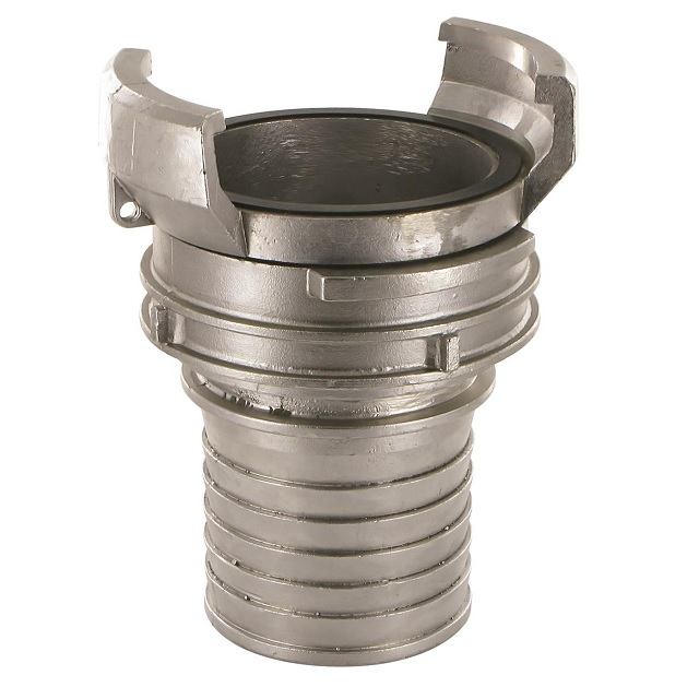 Nerezová koncovka GUILLEMIN - symetrické bajonetové spojky jsou určeny pro transport a přepravu kapalných i sypkých látek a granulátů např. sila, cisterny vagonů, zemědělský a chemický průmysl.Konstrukce spojky je francouzsko-belgického původu a odpovídá normě EN 14420-8 / NF E 29-572.Identické poloviny spojky se dvěma západkami jsou spojeny mezi sebou přiložením těsnících ploch k sobě a následným otočením obou uzavíracích prstenců tak, aby zapadly do západek. Pro utažení je potřeba použít hákový klíč Guillemin.Standardní těsnění (NBR) Buna (černá). Další možnosti BUNA (bílá), Guillemin VITON, Guillemin PTFE.Nejsou vhodné pro plyny a páru.Na přání možnost dodat v mosazném provedení.