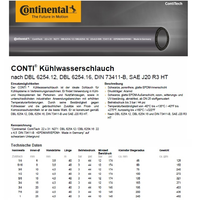 Velice kvalitní a flexibilní hadice pro chladicí kapaliny je ideální hadicí pro chladicí systémy v motorech s vnitřním spalováním, používá se v chladicích a topných systémech u osob a užitkových vozidel, jakož i v různých průmyslových aplikacích, kde je vyšší teplota.Je odolná vůči chladící vodě a obvyklé přísady proti mrazu a antikorozním prostředkům. Hadice se dodává po celých baleních, dílny, servisy.