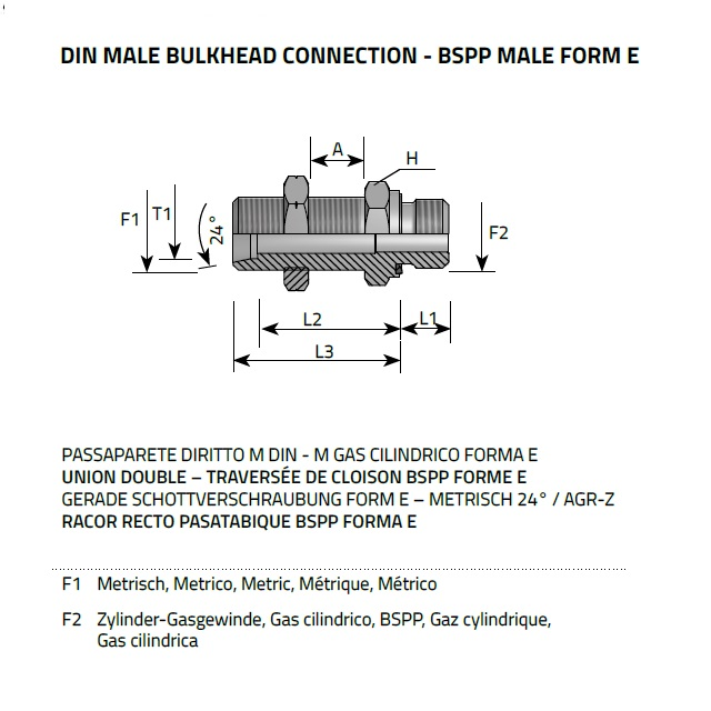 Přepážkové šroubení DIN2353-24°, přip. závit vnější BSPP s o-kroužkem (formaE).Lehká řada =L, těžká řada=S.Komplety se nedrží skladem, kód ****.1 jsou holá hrdla, Gumička je součástí výrobku.