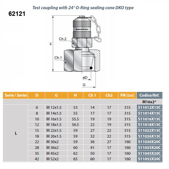 VariantyS11012X15C; Provozní tlak (bar) 315, Rozměr vněj. závitu (mm) M16x2,0, Vnitřní závit M12x1,5, Trubka (mm) 6L, Hmotnost (kg) 0,02, Šestihran 17