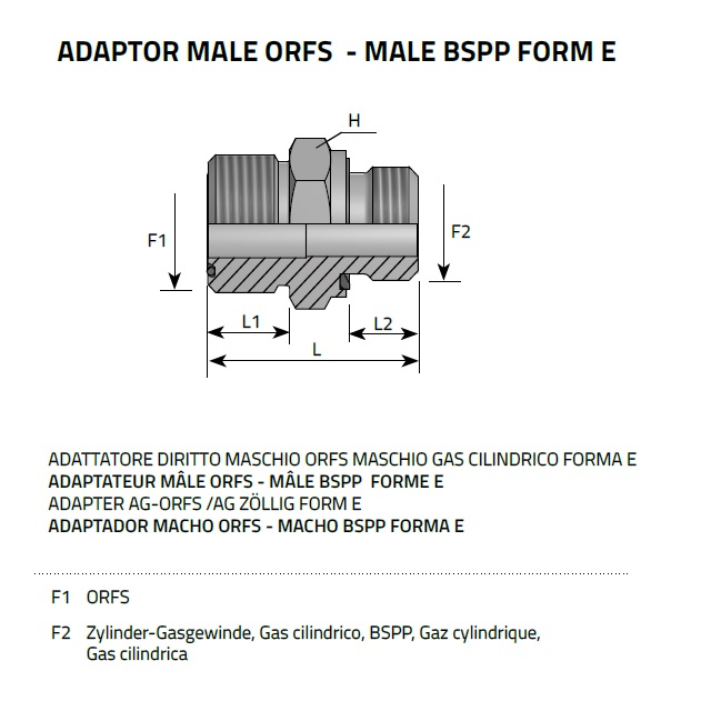 Dosedací plocha do kostky je osazená okroužkem - forma typu připojení "E"Strana ORFS - standardní okroužek NBR
