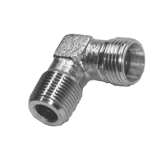 Připojovací koleno s kuželovým BSPT (R) závitem do kostky, výstup na Metrickou řadu s vnitř. 24° kuželem.Lehká i těžká řada (L) + (S).
