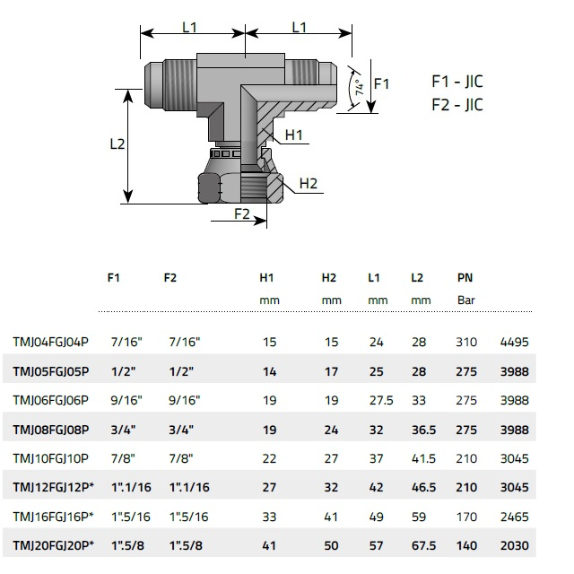 TMJ16FGJ16P; Provozní tlak (bar) 170, Vnitřní závit 1.5/16", Šířka (mm) 49, Vnější závit 1.5/16", Hmotnost (kg) 0,21, Šestihran 33/41, Kóta B 59