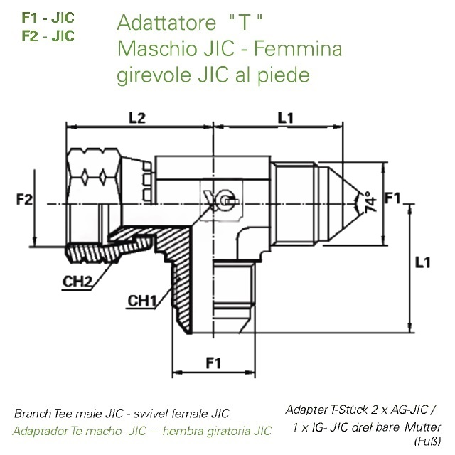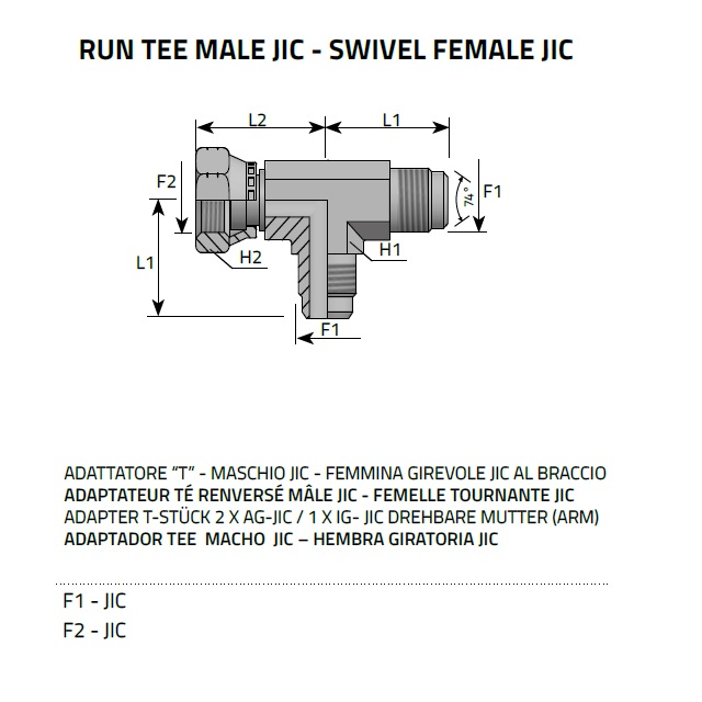 Ocelový adaptér T pro hydrauliku JIC kužel 74°/ AG