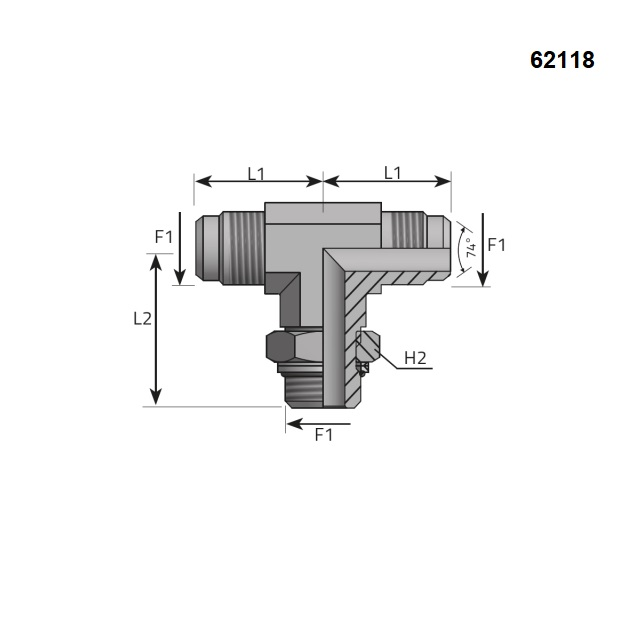 TMJ06MOG06P; Provozní tlak (bar) 210, Šířka (mm) 59, Vnější závit 9/16-3/8-9/16, Hmotnost (kg) 0,18, Šestihran 19/22, Kóta B 33, Provedení Centr 3/8"