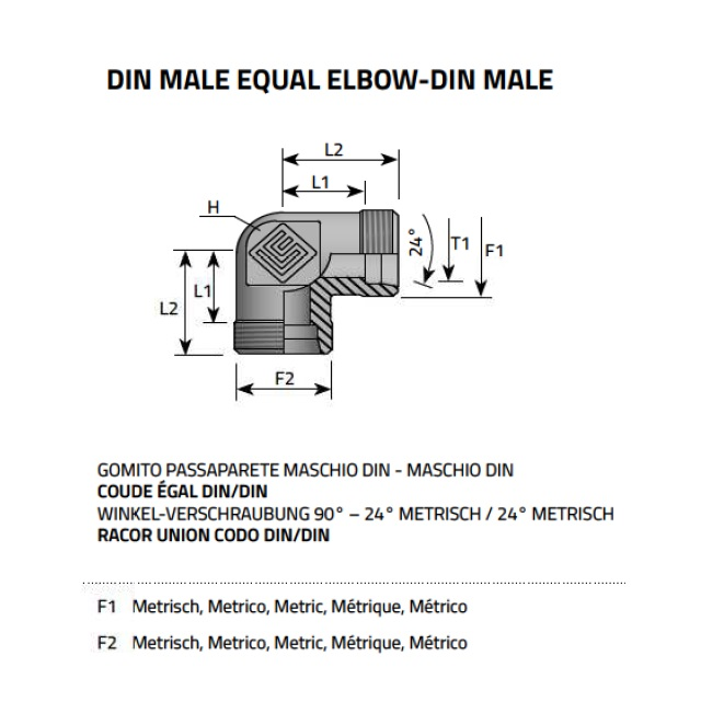 HSU Hydraulické koleno 90°, DIN2353-24°