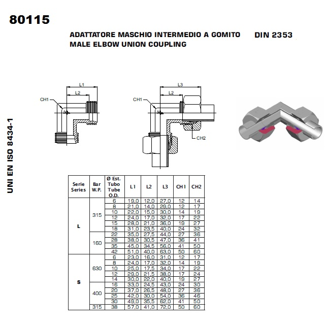 LME08L.1-SS; Provozní tlak (bar) 315, Rozměr vněj. závitu (mm) 2x 14x1,5, Šířka (mm) 14, Trubka (mm) 8L, Hmotnost (kg) 0,015, Šestihran 12
