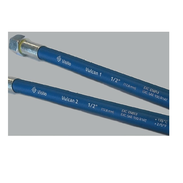 Hydraulická hadice EN853 2SN do +135°C, krátkodobě +150°C. Vulcan hadice nabízejí extrémní spolehlivost, všestrannost a dlouhou životnost. Ideální pro širokou škálu aplikací v podmínkách extrémních teplot. Vysoká odolnost proti ozónu, extrémní odolnosti proti UV záření a povětrnostním vlivům.Použití: kompresorové hadice na tlakový vzduch s příměsmi syntetických olejů na bázi esterů či tristerů.
