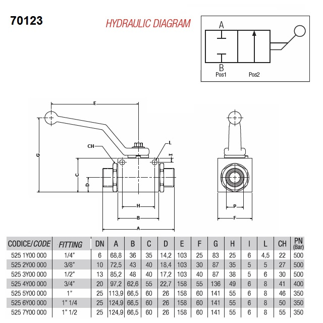 Varianty525.1100.000; Celková délka (mm) 69, Provozní tlak (bar) 500, Vnitřní závit 2x1/4", DN (mm) 6, Průměr otvoru pro šrouby 4,5, Hmotnost (kg) 0,36, Šestihran 22, Kóta A 68,8