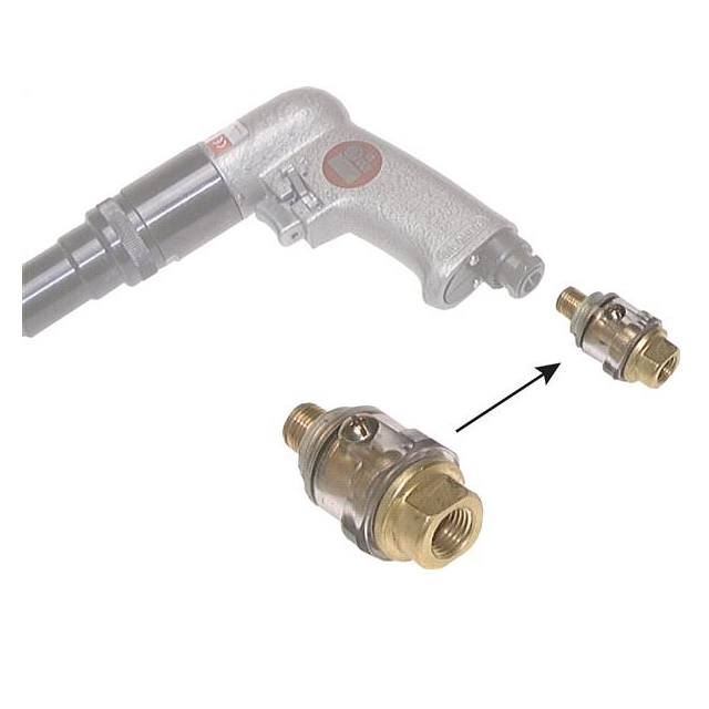 Tento lubrikátor se umísťuje přímo k nástroji na stlačený vzduch. Díky krátké cestě k přístroji je zajištěno konstantní přimazávání olejem. Stav naplnění je neustále viditelný.Pro pneumatické přístroje se silnými vibracemi doporučujeme připojení k nástroji za pomocí krátkého kusu tlakové hadice (PETROTEC 10).