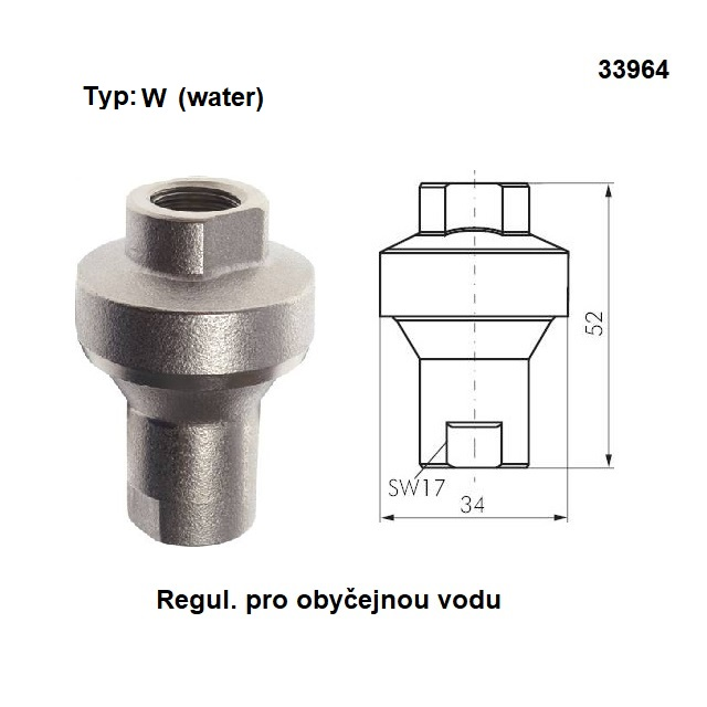 VariantyILDR14-1W-183; Celková délka (mm) 52, Provozní tlak (bar) max.10, Vnitřní závit G 1/4-1/4, Průměr (mm) 34, Hmotnost (kg) 0,12, Provedení Výstup 1 bar