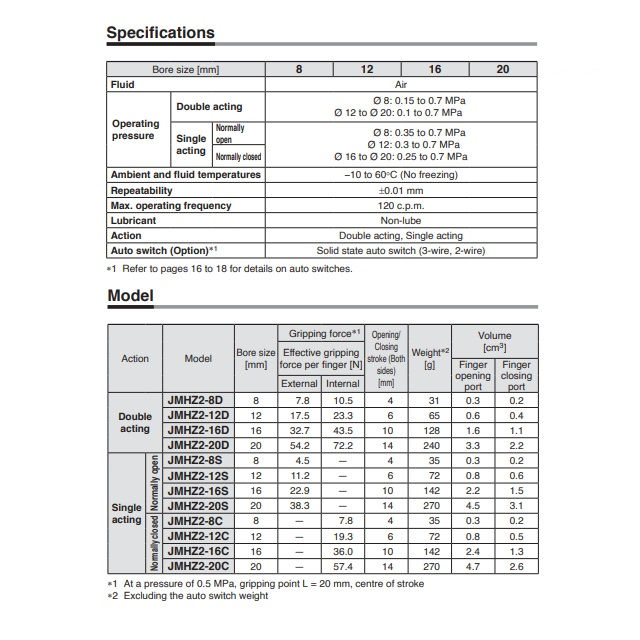 Velikosti (mm): 8, 12, 16, 20Opakovatelná přesnost upnutí: ±0.01 mmJednočinná/dvoučinnáPřímá montáž snímačů polohy do drážek v profilu pohonu.