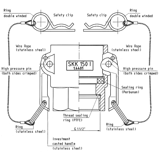Rychlospojkový systém pro sněžná děla podle US-Mil-Norm (MIL-C-27487) nebo DIN EN 14 420-7. Vysoce kvalitní, robustní vysokotlaké rychlospojky z nerezové oceli 1.4401.Jde o vysokotlaké systémy spojek pro zasněžovací zařízení, tedy o speciální spojky pro sněžná děla nebo čerpadla na výrobu umělého sněhu. V hornictví se spojky používají pro aplikace s tekutými médii. Spojky jsou celkově zesílené a litinové páčky a zajišťovací kolíky jsou vyráběny pro vyšší tlaky. Jištění je řešeno pomocí řetízků a pojistných kolíků.Značně vyztužené pouzdro (ve srovnání se standardním Kamlokem).TÜV akreditováno pro pracovní tlak do 60 bar.