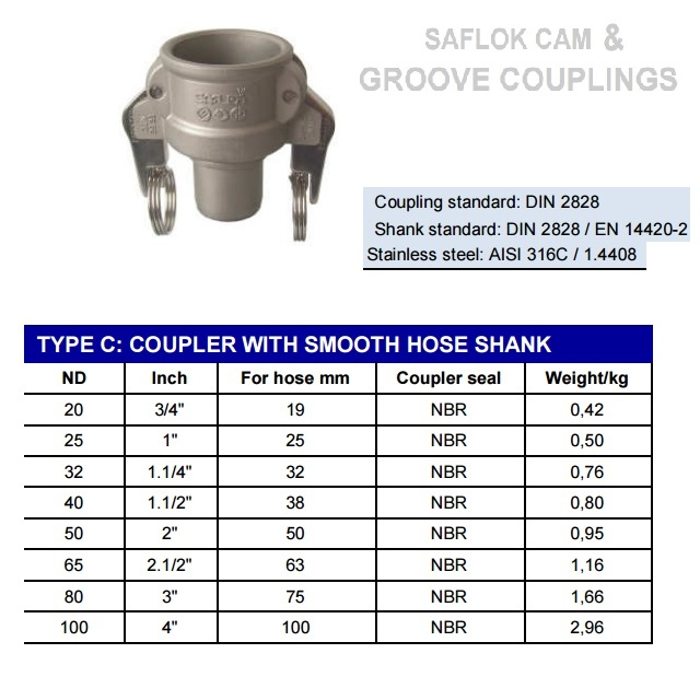 KAMLOK SS316 TRN C a KAMLOK SS316 TRN C/SL jsou dvě provedení systémově podobné, odlišení je provedením výrobce.Kody s polmčkou -74 jsou originální, značkové "SAFLOCK", pantetované společností Waterson.System Self-Lock, zajištění proti samovolného rozpojení jsou ostatní výrobci, kteří řeší zajištění také v páčkách.Hladký trn, provedení jako u KAMLOK SS TRN 2817, rozlišení pouze v systému páček.