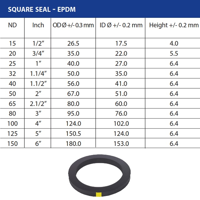 Ploché těsnění EPDM pro rychlospojky KAMLOK.Médium: Kyseliny, pára, alkohol. Nevhodné: Olej, tuky.Jiné typy těsnění pro Kamlok ( dle daného média a nebo teploty ): NBR, Viton, Hypalon, PTFE.