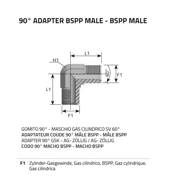 Spojka úhlová 90°, BSP vnější závity, SV60°