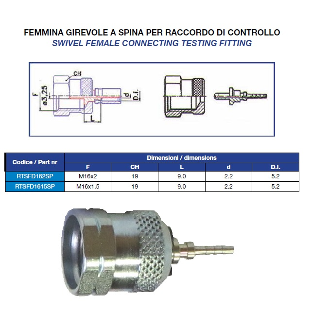 31TTS600; Provozní tlak (bar) 630, Vnitřní závit M16 x1,5, Série (L+S), DN (mm) 2, Objímka *di 5,2, Hmotnost (kg) 0,2, Šestihran 19, Ovládání Klíč, Určeno na hadici [mm] 2,2, Hadice d/D 2/12"