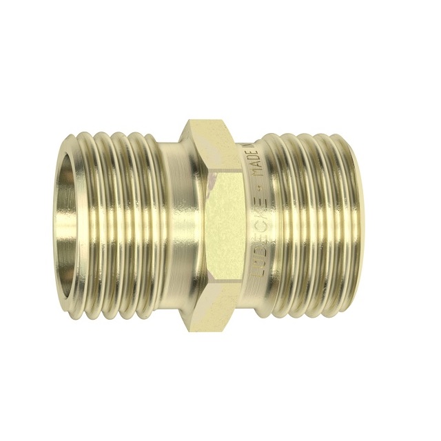 Šroubení pro připojování tlakových hadic, zejména určené pro tlakový vzduch, tlakovou vodu, stavební kompresory, pneumatické nářadí apod.Šroubení odpovídá normě DIN 20 033.