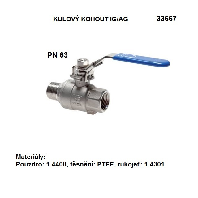 Kohout s vnějším/vnitřním závitem PN 50 Bar, (-20°C/+150°C), PTFE