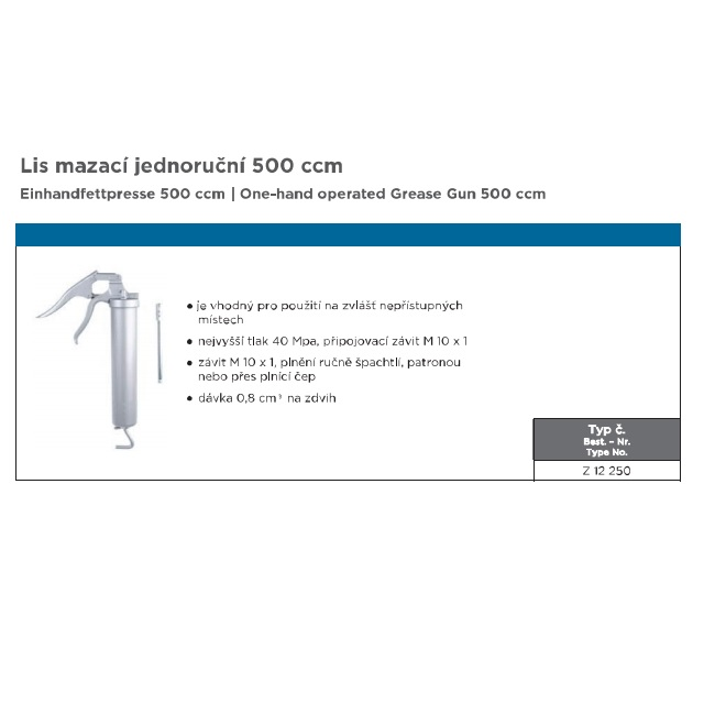 VariantyLK-M12250; Provozní tlak (bar) 400, Hmotnost (kg) 1,5, Typ 500 cm3