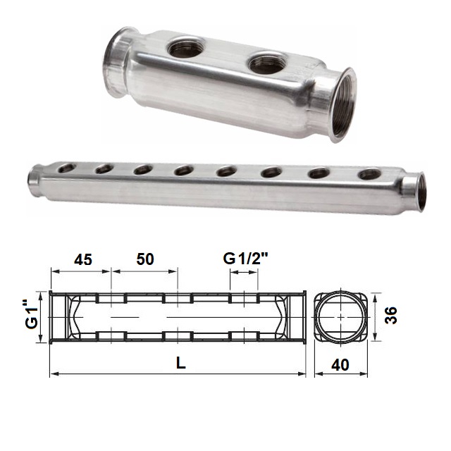 Hliníkový rozvodný blok (lišta), pro rozvod tlakového vzduchu do 16 Bar.Připojovací závity jsou vždy pro jeden kód stejného rozměru.Lišta je jednostraná (3 vývody vedou jen na jednu stranu ve tvaru L k výstupu nebo vstupu).