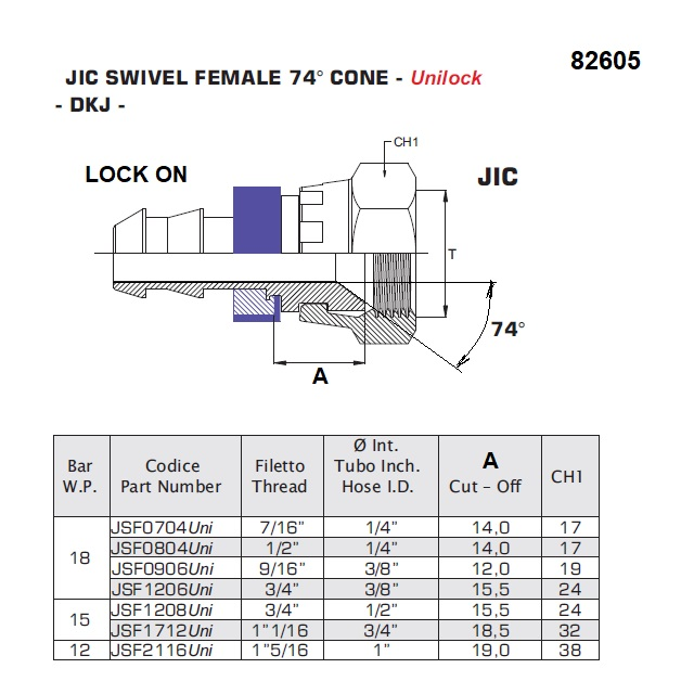 VariantyFGJ0407LOCK-SS; Provozní tlak (bar) 18, Vnitřní závit JIC 7/16", Hmotnost (kg) 0,165, Šestihran 17, Hadice d/D 1/4"