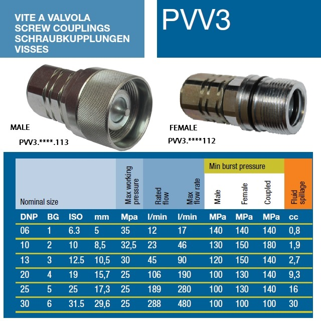 Šroubovací hydraulická rychlospojka s BSP závity do 450 Bar (PVV3)
