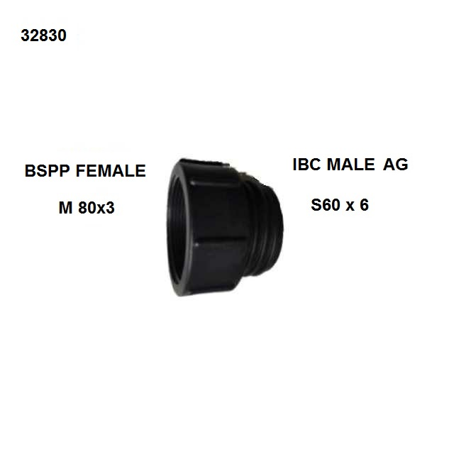 IBCM60-BSP-IBCKF80-PP; Vnitřní závit M80x3, Vnější závit IBC S60x6, Hmotnost (kg) 0,15, Šestihran -