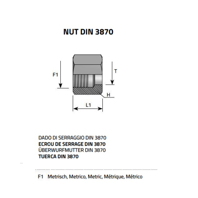 Matice převlečná DIN 3870 pro hydraulické hadice, metrické závity, lehká řada.