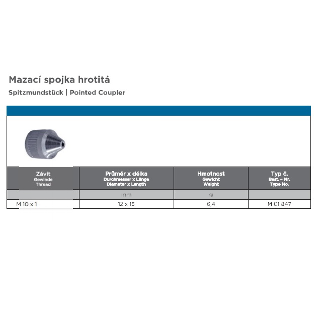 S4-M01847; Vnitřní závit M10x1, Průměr (mm) 12, Hmotnost (kg) 0,009, Kóta A 15