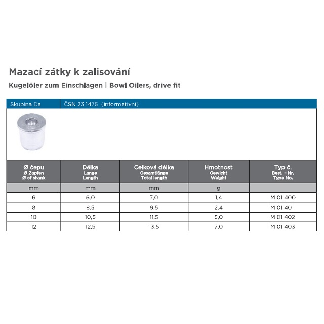 D-M01401; Celková délka (mm) 8 mm, Hmotnost (kg) 0,002