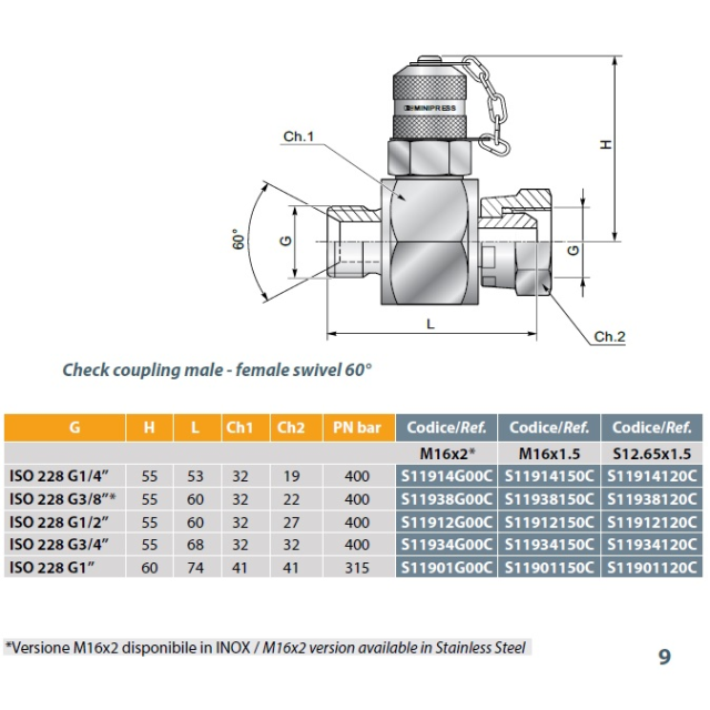 S11938G00C; Provozní tlak (bar) 400, Vnitřní závit G 3/8", Vnější závit G 3/8", Připoj. závit M16x2, Hmotnost (kg) 0,295, Šestihran 22/32