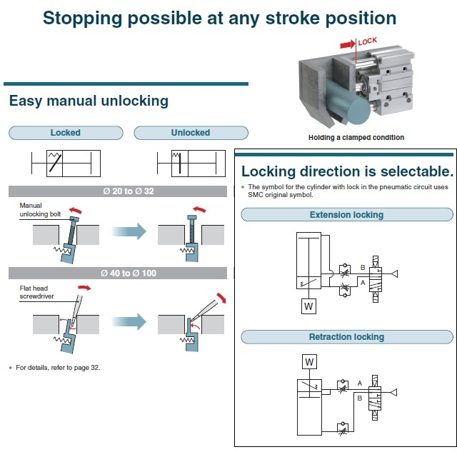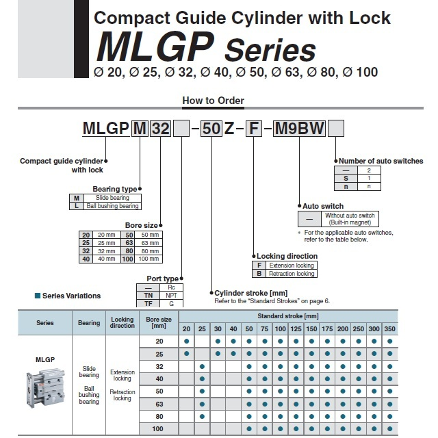 Kompaktní rozměry a nižší hmotnost stroje – snížení hmotnosti válce a úspora prostoru díky konstrukci s vodicími tyčemi a čelní deskou.Průměry pístu: 12, 16, 20, 25, 32, 40, 50, 63, 80, 100 mmZdvihy: až 400 mm (v závislosti na průměru pístu).k dispozici 3 typy vedení: M: standardní kluzné, přesné L: valivé, vysoce přesné valivé - bez brzdy.Možnost montáže válce ze 4 stran: shora, zdola, za T-drážku, za zadní čelo.
