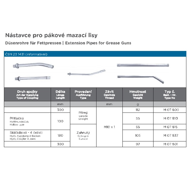 VariantyNL-M07810; Celková délka (mm) 100, Hmotnost (kg) 0,055, Typ Přímý