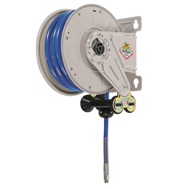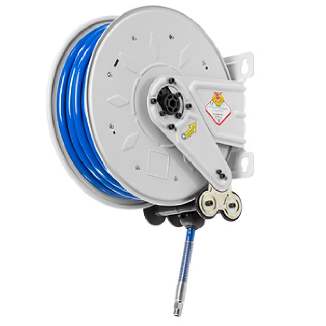 Kombinovaný uzavřený naviják - plast - lakovaná ocel - mosazný otočný čep (bez hadice i hadicemi).ABS - (složení krytu navijáku) je Akrylonitrilbutadienstyren je amorfní termoplastický průmyslový kopolymer, který je odolný vůči mechanickému poškození. Je odolný vůči kyselinám, hydroxidům, uhlovodíkům, olejům, tukům.Naviják má výsuvnou hadici, která má každých 60 cm automatickou stopku, která zabraňuje samovolnému návratu hadice zpět.Hadice se může protáčet v rychlospojce a nepřekrucuje se.Naviják bez hadice na základě požadavku osadíme hadicí s koncovkami.Naviják je též vhodný i do prostředí ATEX (zóna 2 a 22).9450.100-20B-FEG1/2 - Uzavřený pevný naviják bez hadice z ABS, série S.430, pro vzduch-voda, 20 bar, bez hadice. Vstup a výstup G 1/2"(f).9450.101-20B-FEG1/2 - Uzavřený pevný naviják s hadicí z ABS, série S.430, pro vzduch-voda, 20 bar, s černou gumovou hadicí 12 m, ø 3/8".9450.102-20B-FEG1/2 - Uzavřený pevný naviják s hadicí z ABS, série S.430, pro vzduch-voda, 20 bar, s černou gumovou hadicí 18 m, ø 3/8".9450.103-20B-FEG1/2 - Uzavřený pevný naviják s hadicí z ABS, série S.430, pro vzduch-voda, 20 bar, s černou gumovou hadicí 10 m, ø 1/2".9450.104-20B-FEG1/2 - Uzavřený pevný naviják s hadicí z ABS, série S.430, pro vzduch-voda, 20 bar, s černou gumovou hadicí 15 m, ø 1/2 ".